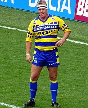 Kevin Stewart Ellis (born 29 May 1965) is a Welsh former professional rugby league and rugby union footballer who played in the 1980s, 1990s and 2000s. A Great Britain and Wales national representative. He played club level rugby union (RU) for Bridgend RFC, Maesteg RFC (two spells), Treorchy RFC, Sale Sharks, London Irish, Cardiff RFC, Pontypool RFC and Ebbw Vale RFC, at representative level rugby league (RL) for Wales, and at club level for Warrington Wolves, Workington Town, Gold Coast Chargers, Bridgend Blue Bulls and Celtic Crusaders, as a stand-off, scrum-half, or loose forward.[1][3]