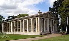 The Orangery[47] was designed by Sir William Chambers, and was completed in 1761. It measures 28 by 10 metres (92 by 33 ft). It was found to be too dark for its intended purpose of growing citrus plants and they were moved out in 1841. After many changes of use, it is currently used as a restaurant.