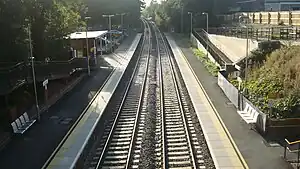 As part of the electrification of the Great Western Main Line, the line through Keynsham closed for 1 week in April 2016 so that Network Rail could carry out preparation work for the installation of the overhead wires. This involved the lowering of the track under the road bridge and the replacement of the canopy on platform 1. Also the brick shelter on the Bath (up) platform was enlarged.[12][13] The canopy on Platform 2 was removed between 14 and 18 March 2016.