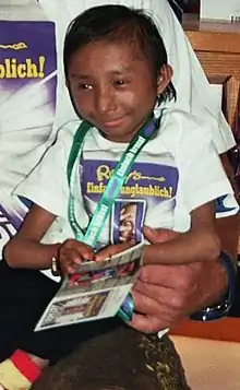 Khagendra Thapa Magar (Nepali: खगेन्द्र थापामगर) (4 October 1992 – 17 January 2020)[2] was a Nepali once known as the shortest man in the world, measuring 0.67 m (2 ft 2 in).[1][3] Magar, who was a primordial dwarf, won the title of shortest man from Edward Niño Hernández. He lost the title in June 2011 to Junrey Balawing of the Philippines.[4]