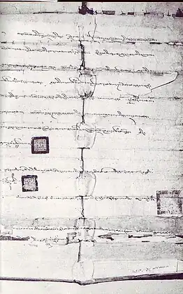 On 5 August 1727 a routine meeting of the Kashag took place in an upper room of the Jokhang temple. Khangchenné took part of it in a good mood, joking and fraternizing. A letter was handed to him by a subordinate official. As Khangchenné began to read, he was unexpectedly seized from behind by some officials. All the present ministers now drew their daggers and stabbed Khangchenné to death.[13] His guards, who waited outside the office, were killed as well, while all present followers of the murdered minister were apprehended and taken away. On the next day the murderers sent people to arrest and kill Khangchenné's wife and her sister, together with his secretary and a steward. The conspirators dispatched a troop to Pholha with orders to eliminate Pholhané. The latter, however, had arranged for his escape to West Tibet, and the troop had to turn back without carrying out the deed.[14] The consequence was a civil war that raged for a year, where Pholhané eventually triumphed.