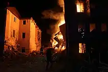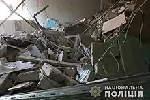 The missile strike on dormitories in Kharkiv was performed by Russian aviation with a series of missiles in the evening of 17 August and in the morning of 18 August 2022.[5] This became one of the largest attacks on Kharkiv[6] and one of the most tragic nights of the city.[7] The impact killed 25 people[1] including an 11-year old boy.[2] 44[3][8] were injured (including 3 children[4]).