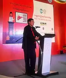 Affiliated with local associations as well as many international prestigious hepatology associations. One of the greatest achievements is the successful development of Plasma- derived hepatitis B vaccine in Myanmar in collaboration with WHO, CDC and New York Blood Center in 1997 with funding from United Nations Development Programme (UNDP). He had served as chairman of Myanmar Medical Stomach, Intestinal and Liver Disease Group and, as a member of International Hepatitis Group and US liver disease group.[4][1]