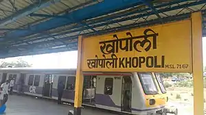 Khopoli railway station (formerly Campoolie railway station, station code: KP) is a suburban railway station on the Central line of the Mumbai Suburban Railway in Mumbai, India. Khopoli is the terminus of the Central Railway's south-eastern corridor. Unlike Kasara, there are no tracks connecting to major cities, like Kasara connects to Nashik. Instead, the Central railway diverges from Karjat, moves onto Palasdhari railway station and continues further towards Lonavla, Pune, Chennai and Kanniyakumari stations.