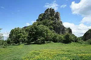 Khornabuji Castle (Georgian: ხორნაბუჯი, romanized: khornabuji), also sometimes known as the Fortress of Tamar (Georgian: თამარის ციხე, romanized: tamaris tsikhe), is an ancient castle in the eastern part of Georgia. It is located approximately two miles / 3 kilometers north of Dedoplistsqaro in the region of Kakheti. The castle's ruined remains are sited on the imposing Tsiv-Gombori Range. It was probably constructed, originally, at the end of the 1st millennium BC, at which time it was the only fortification controlling the valleys of the Iori and Alazani rivers.[1][2]