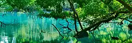Khoun Kong Leng Lake, also Kong Leng Lake, is a lake of Khammouane Province, Laos, located roughly 30 miles north of Thakhek in the Phu Hin Pun foothills. The lake is roughly 21 metres (70 ft) deep in the centre and is a bright emerald colour.[1] Lonely Planet describes it as "stunningly beautiful", "luminescent green waters [which] spring from a subterranean river."[2] The underground water flows through limestone, which gives the water its green colour.[3] The lake is revered by the locals who believe it has mystical powers and the ability to ring a gong in the dead of night on full moon.[1] The name of the lake "Kong Leng" means "evening gong", reflecting local belief.[1]