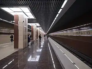 Khovrino (Russian: Ховрино)[4] is a station on the Zamoskvoretskaya line of the Moscow Metro. The station opened on 31 December 2017. It is the northern terminus of the line, and the closest subway station to the Sheremetyevo International Airport.