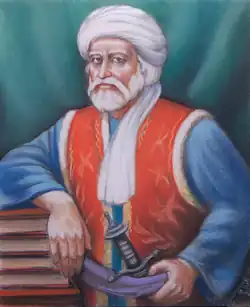 Khošāl Khān Khaṭak (Pashto: خوشال خان خټک; Urdu, Persian: خوشحال خان خٹک; 1613 – 25 February 1689), also known as Khushal Baba (Pashto: خوشال بابا), was a 17th-century Pashtun poet, chief, and warrior.[2] Khushal Khan served the Mughal Empire protecting them from Pashtun warriors over most of his lifespan. After being expelled from his tribal chiefdom and replaced with his son by his Mughal superiors, Khushal Khan turned against the Mughals. Afterwards, Khushal preached the union of all Pashtuns, and encouraged revolt against the Mughal Empire, promoting Pashtun nationalism in the last years of his life through poetry. Khushal wrote many works in Pashto but also a few in Persian. Khushal is considered the "father of Pashto literature" and the national poet of Afghanistan.[1][3]