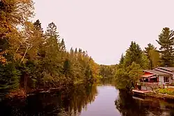 Several dams have been erected in order to regulate the flow of the river, in particular on Lake Kiamika. This body of water eventually became a reservoir of 43 kilometres (26.72 mi) in area, with a maximum depth of 46 metres (151 ft). This reservoir has several large islands, some of which were contiguous lands before the submersion.[2]