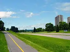 The Kichi Zībī Mīkan,[1] (/ˈkɪtʃiː ziːbiː ˈmiːkʌn/ ki-chee zee-bee MEE-kun)[2] formerly the Sir John A. Macdonald Parkway, and previously the Ottawa River Parkway, is a four-lane scenic parkway along the Ottawa River in Ottawa, Ontario, Canada. It runs from Carling Avenue near Connaught Avenue, to Booth Street at the Canadian War Museum and National Holocaust Monument. It is maintained by the National Capital Commission. The speed limit is 60 km/h (37 mph). Bicycles are allowed on the road and on a parallel recreational path along the parkway.
