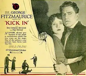 Kick In is a 1922 American silent crime drama film produced by Famous Players–Lasky, distributed by Paramount Pictures, and starring Betty Compson and Bert Lytell. The picture was directed by George Fitzmaurice, who previously directed a 1917 film version of the story. Both films are based on Willard Mack's 1913 play that was produced on Broadway in 1914 starring John Barrymore.[1] The supporting cast features Charles Ogle, who had played the first screen Frankenstein's monster in the original 1910 version of Frankenstein.