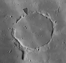 ![]() Lunar Orbiter 4 image (Dark triangle at upper rim is blemish on original photo) | |