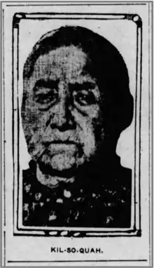 2. 1 2 3 "Kilsoquah Dies At Age Of 105". The Fort Wayne News (City; Saturday Evening ed.). Fort Wayne, IN. 4 September 1915.
