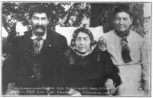 Kiilh-sooh-kwa in June 1913 with her son and her daughter. Originally printed in 1917 in Little Turtle (Me-she-kin-no-quah): The Great Chief of the Miami Indian Nations by C. M. Young.