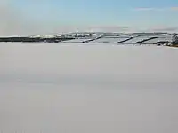 Plantations are recorded as having existed at Willowyard near Beith from the 19th century and some woodland policies still survive; the southern end had the Lady Mary's planting, but the northern end was devoid of trees.[26] The old industrial sites on the western shore, for the first 0.75 km or so have substantial Willow plantations and there are some groups of older deciduous trees. Beyond the plantations, and continuing round the loch into the very north-east corner, farmland borders the loch. The Bark Mill near Mains House may be responsible for the loss of the oak trees from around the loch. The virtual absence of emergent vegetation is a characteristic of the loch and may be linked to the consolidated substrate.[19]