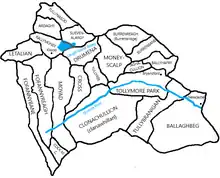 The civil parish is mainly in the historic barony of Iveagh Upper, Lower Half with one townland in Iveagh Upper, Upper Half.[2]