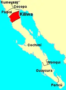 The Kiliwa (Kiliwa: Ko’leeu) are an indigenous people of Mexico living in northern Baja California. Historically they occupied a territory lying between the Cochimí on the south and the Paipai on the north, and extending from San Felipe on the Gulf of California to San Quintín on the Pacific coast. Their traditional language is the Kiliwa language.
