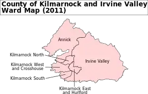 Wards of the Kilmarnock and Irvine Valley Scottish Parliament constituency as of 2011.