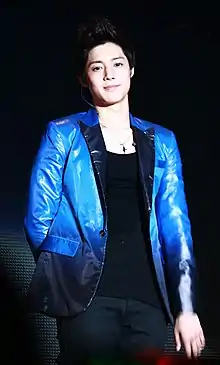 On January 25, 2012, Kim released his first Japanese single "Kiss Kiss / Lucky Guy", which consists of Japanese versions of songs from his two Korean mini albums and one original Japanese song.[16] Both singles reached the highest record in a day for any overseas artist in Japan.[17] Two weeks after its release, the single reached its Gold status in Japan for selling 121,547 copies.[18] His First Impact Concert DVD sold 16,000 copies in its first week of release, taking the number one spot for the Overall DVD Chart. This is the first time a Korean artist has taken the number one spot, and a second time a foreign artist has taken the number one spot on the charts.[19] Two months after the DVD release, Kim released his second Japanese single "Heat" on July 4.[20] The single took over Japan Oricon's Daily and Weekly Charts, with 140,000 copies sold on its first day and a total of 183,000 copies for its first week.[21] The album also placed third for Oricon singles monthly chart for the month of July, selling 196,850 copies and beating DBSK's Android album with 171,554 copies.[22] Ultimately, Kim received a Gold certificate again for his "Heat" single.[23] His first full length Japanese album entitled Unlimited topped the Oricon Daily Album Charts,[24] and both the Tower Records' Weekly Album Charts for Shibuya branch and overall Weekly Album Chart[25] upon its release. The album has been certified Gold by the Recording Industry Association of Japan (RIAJ) after selling more than 100,000 units to retailers.[26]