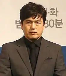 Kim Kwang-kyu (born December 8, 1967) is a South Korean actor.[2] He made his acting debut in 1999 in Dr. K, and its director fellow Busan native Kwak Kyung-taek later cast him in a small but memorable role as a physically abusive teacher in the 2001 box-office hit Friend.[3] Kim continued acting in both television and film as a supporting actor, notably in Couple or Trouble (2006), The Secret of Coocoo Island (2008), Scent of a Woman (2011), and I Can Hear Your Voice (2013).[4][5][6] He also appears on the reality shows I Live Alone (since 2013) and Three Meals a Day (2015).[7][8][9]