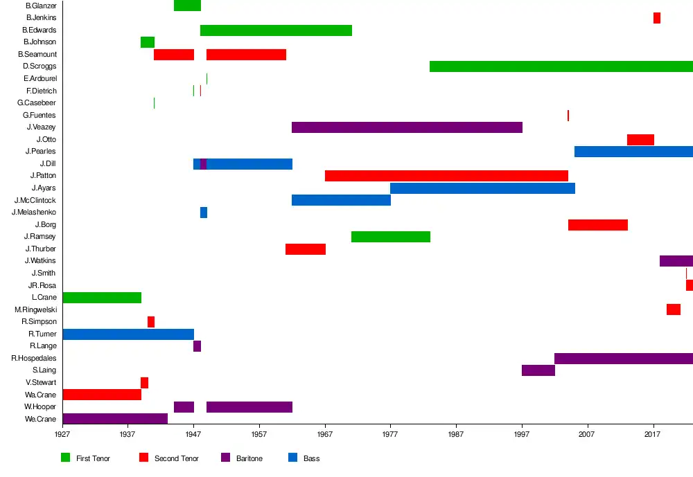 - Waldo Crane, Second Tenor 1927-1939[31]