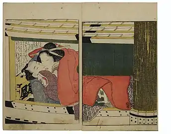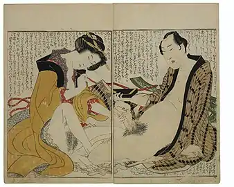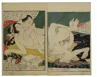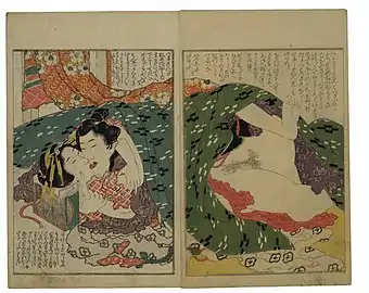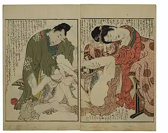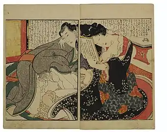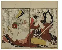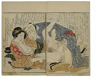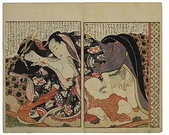 Kinoe no Komatsu (喜能会之故真通) ('Young Pines' or 'Pine Seedlings on the First Rat Day'[1]), published in three volumes in 1814, is a woodblock-printed book of shunga erotica by Hokusai made within the ukiyo-e genre.