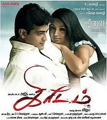 Kireedam (transl.Crown) is a 2007 Indian Tamil-language action drama film directed by A. L. Vijay in his directorial debut. The film is a remake of the 1989 Malayalam film of the same name. It stars Ajith Kumar, Trisha and Rajkiran, while Vivek, Saranya, Ajay, and Santhanam appear in supporting roles. The film's score and soundtrack are composed by G. V. Prakash Kumar, while Tirru was the cinematographer. The film opened on 20 July 2007 to positive reviews and became a hit at the box office. It was dubbed into Telugu as Poorna Market.[1]