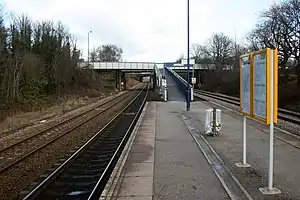 The station consists of a single concrete island platform located between the inner 'fast' lines on the quad track section of route between Marshgate Junction, Doncaster and Thorne Junction. It is unstaffed but there is a ticket machine near to the car park entrance. A single waiting shelter is the only structure on the platform apart from bench seating, timetable posters and customer information screens. Both platforms are fully accessible by means of a long inclined ramp from the main entrance on the road above.[1]