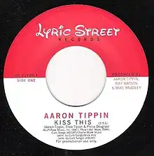"Kiss This" is a song co-written and recorded by American country music artist Aaron Tippin. It was released in May 2000 as the first single from his album People Like Us. The song, written by Tippin with his wife, Thea, and Phillip Douglas, became his third and final Number One on the Billboard country charts,[1] five years after his last Number One, "That's as Close as I'll Get to Loving You" in 1995, as well as the first Number One for the Lyric Street Records label, the label that Tippin was signed to at the time.
