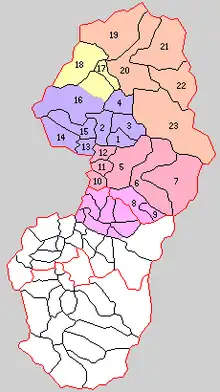 With the establishment of the municipality system on April 1, 1889, the district was consolidated into 23 villages.
