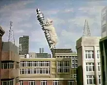 The following morning, Twinkle destroys St Paul's Cathedral and the Post Office Tower, as well as squashing Michael Aspel with his huge paw, and frightening various people and dogs.