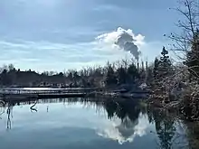One of the most popular locations in the park is the large lake. The body of water resides in what used to be the quarry itself, but was filled with water after being purchased by the St. Charles County Parks Department;[6] this was likely a combination of both rain water accumulation and other artificial means. When in operation, the quarry mined silica sand from the St. Peter Sandstone formation, and the bright, white sand can be seen around the lake today. The park has many different habitats for wildlife such as the large pond, riparian forest, emergent wetland, and grassland. Different animals and life forms call Klondike Park their home. Shorebirds and waterfowl can be found on the pond’s edge, along with sunfish, channel catfish, bluegill, and largemouth bass found in the park's lakes.[7] There are also multiple types of woodpeckers, such as hairy, downy, and red-bellied woodpeckers, which can be found around the park. The grassland areas attract white-throated sparrow, dickcissel, and eastern meadowlark. Bald eagles, northern harrier, red-tailed hawk, red-shouldered hawk, and other birds-of-prey frequent the varied habitats on the area. Great blue heron, green heron, and great egret can be found on the pond's shoreline. Pied-billed grebe, Canada geese, and mallards use the deeper water in the center. There are many different kinds of plants, including horsetail (puzzlegrass).