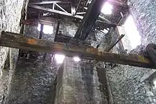 Today the mill lies in a ruined state, a tribute to the false optimism of the time, and is believed to be the largest upstanding building associated with lead mining in north Wales.[2] It is a registered ancient monument [3][4] and, despite its state of disrepair, is under the guardianship of Cadw, the only mine structure in the Gwydir Forest to be so designated.[1]