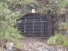 The main adit was blocked by a grill in 2009, for safety reasons. Inside, one of the main Klondyke levels is blocked by a concrete barrier. It is thought to have been installed to use the chamber which the tunnel led to as a "slate-slurry" pit, with the waste being dumped down an air shaft.[10]
