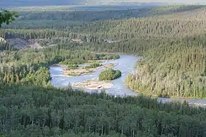 The Klutina River (Tl’atii Na’ in Ahtna) is a 63-mile (101 km) tributary of the Copper River in the U.S. state of Alaska.[1][3][4] Beginning at Klutina Glacier in the Chugach Mountains, the river flows generally northeast, passing through Klutina Lake, to meet the larger river at the community of Copper Center.[5] The river mouth is 66 miles (106 km) northeast of Valdez.[1]