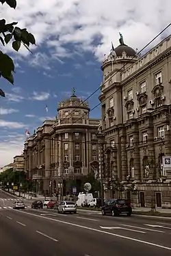 • Intersection with Nemanjina; Building of the Government of the Republic of Serbia; projected by Nikolay Krasnov, built 1926–28, upgraded in 1938. Originally, the Finance Ministry.[20]