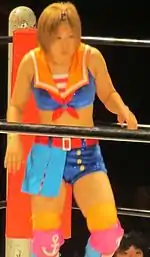 - ↑ "無期限活動休止の理由は、内蔵の疾患によるものです。治療と静養に務める為に、活動休止させて頂く事を選択しました。また万全の体調で皆様の前に立てるように、治したいと思います。8/14新木場では、REINAでの最後の試合を頑張ります。よろしくお願い致します。". Twitter. Retrieved 17 June 2019.