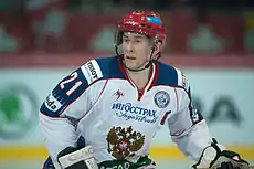 Konstantin Vladimirovich Gorovikov (Russian: Константин Владимирович Горовиков; born August 31, 1977) is a Russian professional ice hockey forward, who is currently an unrestricted free agent who most recently played for Dynamo Moscow of the Kontinental Hockey League (KHL). Player of the Russia national team. Became World champion in 2009 at the world championship in Bern, Switzerland. He has won the Gagarin Cup twice with Dynamo in 2012 and 2013.[1]