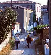 The impressive church of Agios Dimitrios was completely reconstructed between 1892 and 1902, using building materials from the ruins of ancient Hephaistia. It is a three-aisled basilica with a dome. The church was paid for by Emmanouil and Despoina Dimitriadis, a merchant family from Alexandria.