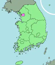 Hwanghae province has been divided into South Hwanghae province and North Hwanghae province since 1954. Thanks to the wide Yonbaek and Chaenyong plains, Hwanghae province is a granary of North Korea and is known for its good quality cereal production.[33] As the millet seeds produced in the region are thick, and have a good taste, they are eaten as much as barley is consumed by people of the southern region. The abundant production of cereal crops provides quality feed for livestock, so the quality of meat produced in the region is said to be good. Chicken raised in every household is fleshy and of good quality, and is used for many dishes in Hwanghae cuisine. It is used as an ingredient for wheat noodle dishes, and mandu (dumplings). The coastal area, adjacent to the Yellow Sea, produces a lot of salt because the tideland in the area is developed and there is little rainfall.[33] Due to the climate, kimchi in the Hwanghae region has a clear and refreshing taste, so its brine is used as a soup on many occasions. Dongchimi brine is used as a broth for naengmyeon (cold buckwheat noodle dish), or for mixing with a bowl of chilled rice to make a midnight snack. The Hwanghae people are known for kindheartedness and rustic simplicity, so their cuisine reflects their nature. Hwanghae dishes are savory and simple, with less decoration such as mandu made in a larger size than other regions. The general taste is moderate, similar to that of Chungcheong province.[3]