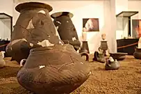 The overall museum consists of three museum parts: Kosovo Museum itself, Emin Gjiku's Housing Complex where an ethnological exhibition has been presented, and the Museum of Independence. Museum consists of four sectors, archaeological sector, ethnological sector, historic sector and natural sector. The main museum building consists of 3 halls or galleries and one of them serves as a hall for permanent archaeological exhibitions, but various exhibits are also presented in the inner yard of the museum as well at the lapidarium, respectively in the Archaeological Park, which is located next to the museum building, or on the right side of it. In the cellars of the museum, are located the warehouses of thousands of findings, artefacts and movable fragments of archaeological material, which are systematized and kept in special conditions with particular attention and care. Within the building of Kosovo Museum, namely on its third floor, you can find the working environment of Kosovo Archaeological Institute, a scientific-professional institution and responsible for archaeological research.[5]
