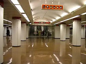 Kossuth Lajos tér (Lajos Kossuth Square) is a station on the M2 (East-West) line of the Budapest Metro. It is located south of Lajos Kossuth Square in Pest, immediately on the left bank of the Danube river. The station was opened on 22 December 1972 as part of the extension of the line from Deák Ferenc tér to Déli pályaudvar.[1]