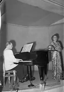 Vehanen accompanying singer Lea Piltti at a concert in the eastern Karelian isthmus in 1943