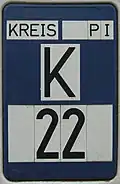 Sign for Kreisstraße 22 (K 22) on a marker post