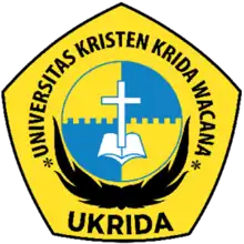 The Krida Wacana Christian University (UKRIDA or Universitas Kristen Krida Wacana) is a private university in Jakarta, Indonesia. It was founded on January 20, 1967, as Universitas Kristen Djaja.[1] UKRIDA was founded in 1967 under the GKI Synod of West Java. UKRIDA has three campuses and two teaching hospitals, with 5 faculties and 14 study programs, of which two study programs are new study programs, namely Applied Bachelor Optometry (the first and only one in Indonesia) & Diploma (D3) Nursing . Not only that, currently UKRIDA is also developing the concentration of Biomedical Engineering in the Electrical Engineering study program. All study programs have been accredited by BAN-PT. Ukrida also equips its students with soft skills programs to be ready to enter the career world.