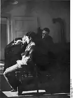 Criminal Investigation Aids, from 1935 Criminal Investigation Employees, were salaried public employees but not civil servants.[19] There were three kinds of Criminal Investigation Employees, Kriminalangesteller (A) in outer service, Kriminalangesteller (K) were drivers, Kriminalangesteller (F) were telex operators.[20] The fact that Criminal Investigation Employees were not civil servants made it possible to recruit reliable members of the Nazi Party, irrespective of civil service regulations concerning employment requirements and regardless of budget plans.[21] The only requirements that were made beyond the normal conditions for public employment in Nazi Germany was that the applicant were physically and mentally fit for police duties.[17] Not all Criminal Investigation Employees were volunteers; members of the Nazi Party and the Allgemeine SS could, after the beginning of the war in 1939, be conscripted into criminal police service.[22] During the German occupation of Denmark, Danish citizens would also be employed as Kriminalangestellter, but with the Gestapo.[23]