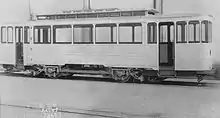 The second class consisted of fourteen units delivered by Skabo between 1887 and 1892. These were delivered in various configurations of open and closed seating and were normally only operated during winter. They had the same dimensions as the Stephenson cars.[1] The final class, built by Falkenried, consisted of fifteen units delivered in 1897. Measuring 6.6 meters (22 ft) in length, they were sufficiently heavy they needed to be hauled by two horses. This was a calculated choice, as they were primarily intended to be used as trailers for the electric trams.[6]