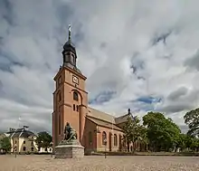 Construction of the Kristine Church started in 1642 and it was ready for use in 1655 under the name of The New Church of Falun.[1] One of the instigators of building the church, County Governor Johan Berndes,[2] had chosen the name Kristine Church [3] as an hommage to Queen Christina in 1651 but the name had to be altered after the queen abdicated and converted to Catholicism in 1654. The name Kristine Church was reintroduced during the late 1700s. The tower was built during the years 1658 - 1660. The bricks of which the church was built were handmade in Rankhyttan, 25 kilometers from Falun. Limestone for the pillars of the church was taken from Rättvik.[1]