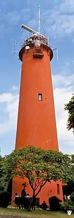 The Lighthouse in Krynica Morska was originally built in 1895. It was destroyed in 1945 after being mined by retreating German forces. A new lighthouse, now open to visitors, was built in 1951. Adjacent to it is a small cemetery with a monument to the Soviet soldiers killed in the explosion that destroyed the original building.
