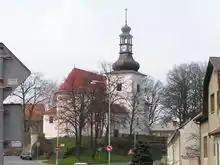 The Church of Saint Mary Magdalene was founded in 1226. It was originally a Romanesque building. After it was burned down in the Thirty Years' War, it was reconstructed in its today's late Baroque form in 1766–1772. The rectory was also founded in 1226. The original wooden structure was rebuilt after 1806.[8]